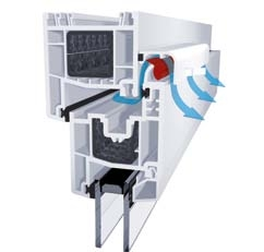 In acest scop este dispobil la cerere pentru ferestrele GEALAN dispozitivul automat de ventilatie GECCO (GEALAN CLIMA CONTROL). Acesta previne cu succes curentii de aer dezgreabili si formarea mucegaiului la pervazul ferestrei. Ferestrele normale sunt astfel transformate in ferestre de aerisire. In pozitia normala clapeta sta deschisa - aerul poate circula neperturbat. La vant puternic clapeta inchide automat canalul de ventilatie si impiedica aparitia curentilor de aer deranjanti. GECCO face acest lucru in intregime independent. Dispozitil de ventilatie GECCO indeplineste si din punct de vedere tehnic toate criteriile necesare. Testele au demonstrat ca pentru acest tip de ventilatie nu se produc pierderi vizibile de caldura.
