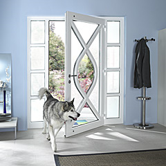 In cazul usilor de intrare din PVC stabilitatea, rezistenta la torsiune si durabilitatea colturilor joaca un rol important. De aceea GEALAN a conceput traversele usii in sistemul S 8000 IQ astfel incat sa permita montarea celei mai mari armaturi posibile. In plus, dispunerea speciala a traverselor la o adancime de constructie de 74 mm permite utilizarea unui otel cu rezistenta la indoire mai mare cu pana la 30%. Armaturile sunt deja frezate in prealabil pentru a permite montarea rapida a elementelor de inchidere. Suporturile de praguri deja folosite si in celelalte sisteme GEALAN permit inchiderea etansa a usii pe prag.Pentru a imbunatati rezistenta la torsiune si pentru intarirea colturilor usii, exista si elemente de imbinare pe colt adecvate. Multitudinea acesoriilor permite constructia celor mai variate modele de usi. In profilul usilor pot fi montate atat armaturi si module de inchidere disponibile pe piata, cat si umpluturi de pana la 40 mm. Profilele de usi sunt disponibile in doisprezece nuante acrylcolor standard sau in sase tipuri de imitatie de lemn, plus numeroase nuante extra-standard. Avantajele usilor GEALAN: